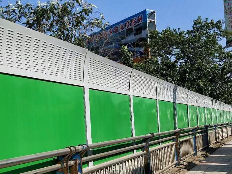 橋梁聲屏障是以吸聲材料為芯材,采用彩鋼夾芯板聲學(xué)構(gòu)件組裝成的吸、隔聲屏障。彩鋼聲屏障吸聲型聲學(xué)構(gòu)件可加工成百頁窗式、穿孔式、微穿孔式和開槽孔式等若干種吸、隔聲型聲學(xué)單元。百葉窗和穿孔的吸聲彩鋼復(fù)合板中、高頻隔聲性能較好,不開槽孔的彩鋼復(fù)合板聲學(xué)構(gòu)件對中、低頻隔聲性能較好。因此可根據(jù)噪聲特點選用不同結(jié)構(gòu)形式的聲屏障。